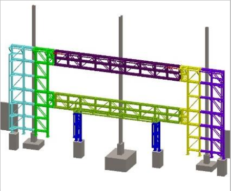 CÁLCULO Y MODELADO 3D DE PÓRTICO DE ENTRADA ALMACÉNPARQUE LOGÍSTICO-GRUPO CENTENARIOPor adminprodicmont / septiembre 16, 2025 Modelado 3D del pórtico Foto de la estructura instalada en el GrupoCentenario